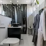 A The View Apartment 1 vendégei élvezhetik a szárító, háziköntösök és törölközők kényelmét a fürdőszobában. Emellett talál bidét, külön WC-t és zuhanyzót.